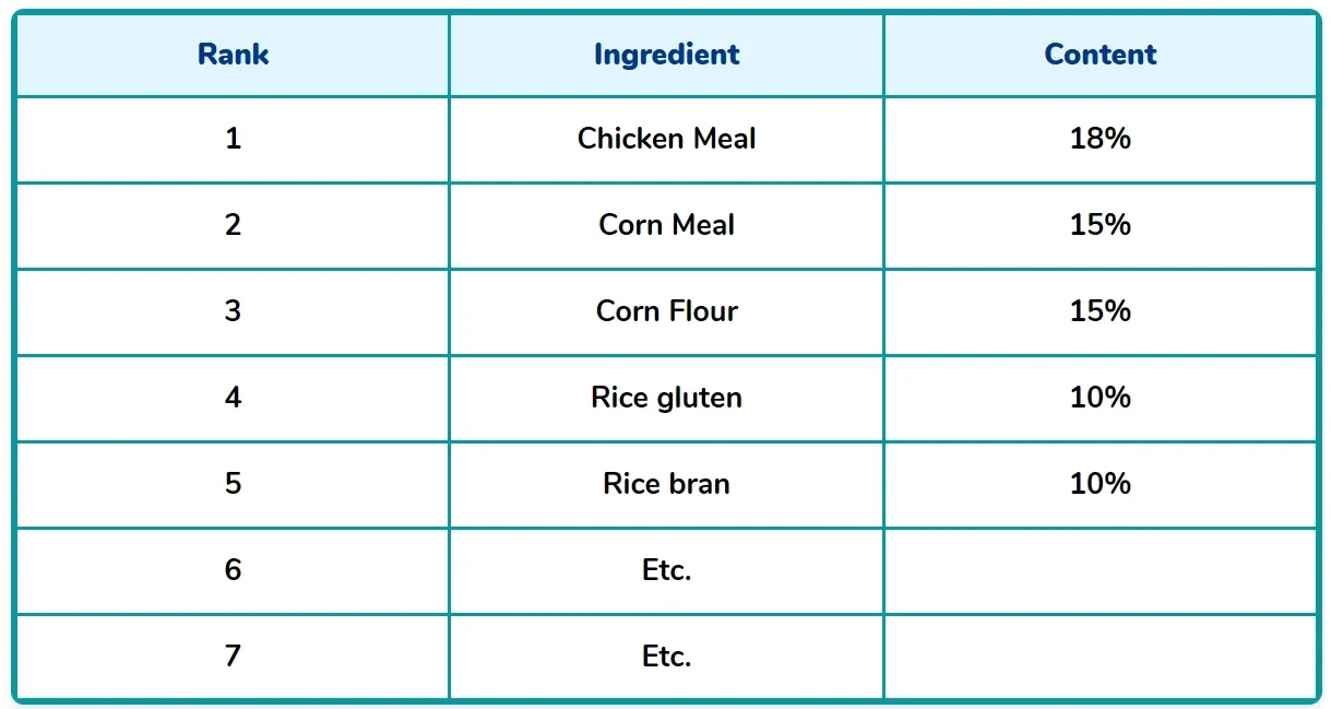 Example: If you're in the habit of looking at the labels on pet food, and you see a brand marketed as high in protein, and you also see chicken as the first ingredient, it's easy to be convinced the high protein content is coming from the chicken. Unfortunately, that's often not the case.